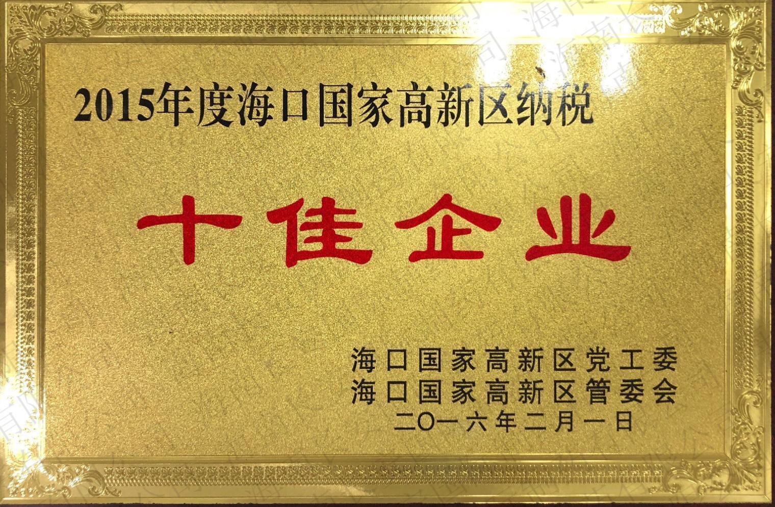 2015年度??趪腋咝聟^納稅-十佳企業