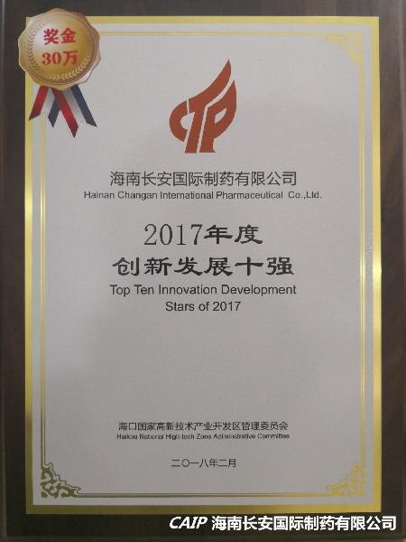祝賀海南長(zhǎng)安制藥榮獲“2017年度安全生產(chǎn)工作先進(jìn)單位”、“2017年度創(chuàng)新發(fā)展十強(qiáng)”榮譽(yù)稱號(hào)