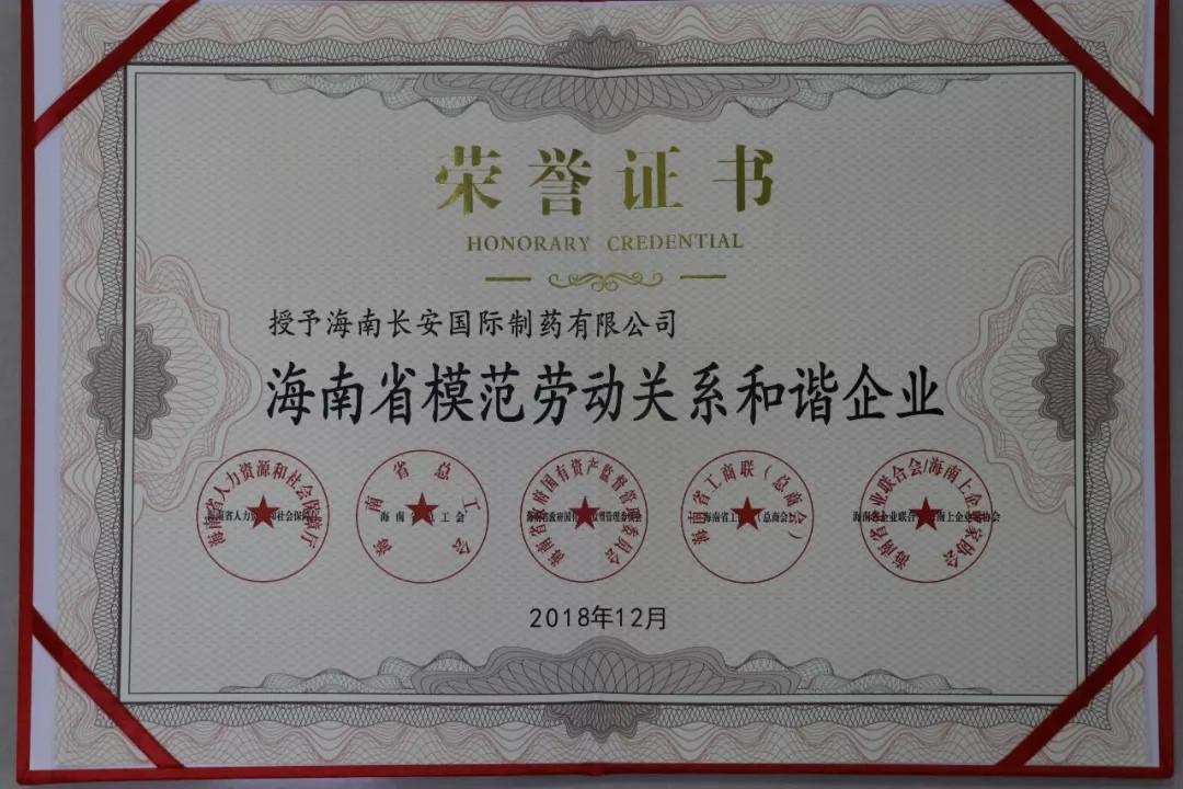 海南長(zhǎng)安國(guó)際制藥有限公司將發(fā)揚(yáng)成績(jī),再接再厲,積極探索發(fā)展和諧勞動(dòng)關(guān)系的新舉措,創(chuàng)造新的業(yè)績(jī),為全面建成海南自由貿(mào)易試驗(yàn)區(qū)和中國(guó)特色自由貿(mào)易港做出新的更大貢獻(xiàn)!