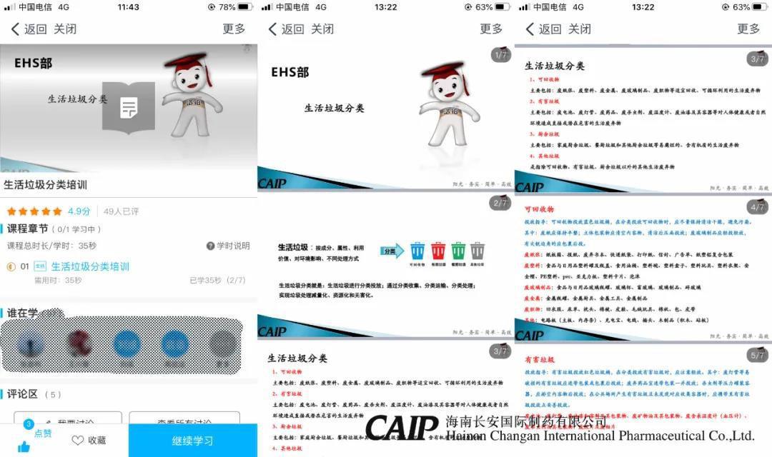當(dāng)天,長(zhǎng)安制藥還通過(guò)網(wǎng)上益佰云學(xué)院對(duì)全體員工進(jìn)行了“生活垃圾分類(lèi)”的在線培訓(xùn),確保廣泛深入、全面系統(tǒng)的對(duì)員工了解并熟知生活垃圾四分類(lèi)原則、垃圾投放要求、垃圾收運(yùn)過(guò)程、全公司分類(lèi)垃圾桶設(shè)置等。